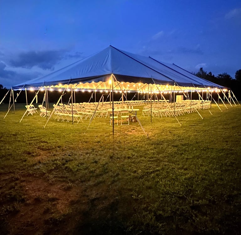 TENTS. For a true camping experience, you can bring your own tent and camp out on the beautiful grounds AT NO COST. There will be designated areas for camping and the grounds can host 50+ tents. Porta potties and showers are available on the campgrounds for use. Bring your own towels & toiletries.