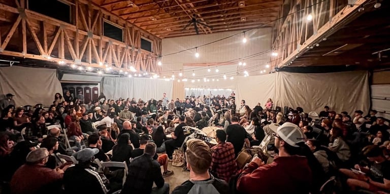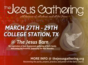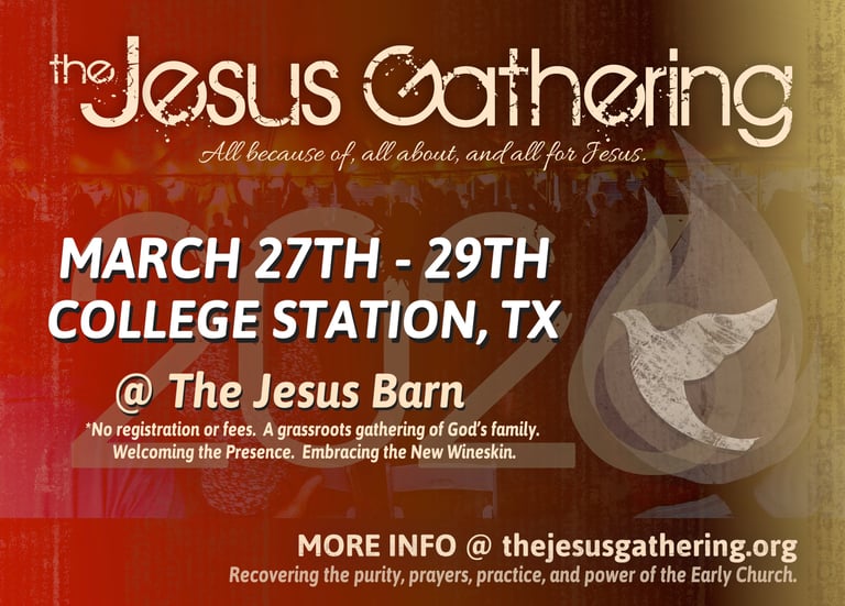 For our evening gathering we'll come back together at THE JESUS BARN as ONE GROUP to feast, fellowship, fervently love and minister to the Lord!